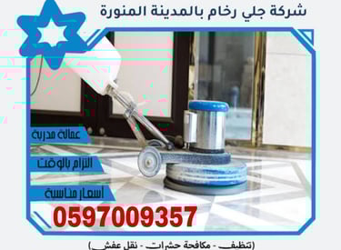 نقدم لك خدمة تنظيف وجلي الرخام والبلاط بأحدث المعدات والمواد الآمنة التي تعيد للرخام لمعانه الطبيعي وتحافظ على لونه لمدة طويلة. نقوم بإزالة البقع الصعبة والخدوش والطبقات المتسخة، ثم جلي وتلميع الأرضيات لتصبح ناعمة ولامعة مثل الجديدة. نعتمد على فنيين متخصصين في جلي الرخام والبلاط داخل المنازل والفلل والشقق والشركات في المدينة المنورة. تواصل معنا عبر الجوال أو الواتساب لحجز موعد خدمة جلي وتنظيف الرخام والبلاط في أقرب وقت.